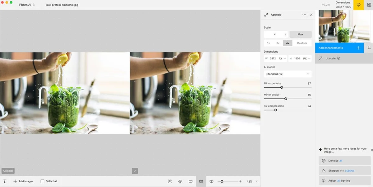 Example of Topaz AI upscaling workflow (recreated for portfolio purposes). Photo by Jan Sedivy/Unsplash.